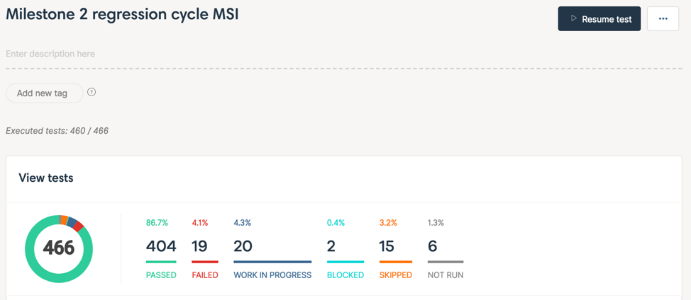 - Oct 2nd, we finished the first cycle of regression passing though 500 (466 on HipTest + 30 B2B case on Jira) test cases.