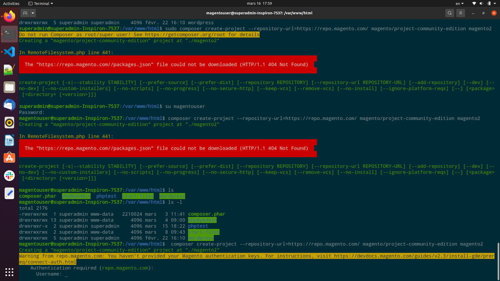 In RemoteFilesystem.php line 441: The "https://repo.magento.com//packages.json" file could not be downloaded (HTTP/1.1 404 Not Found)