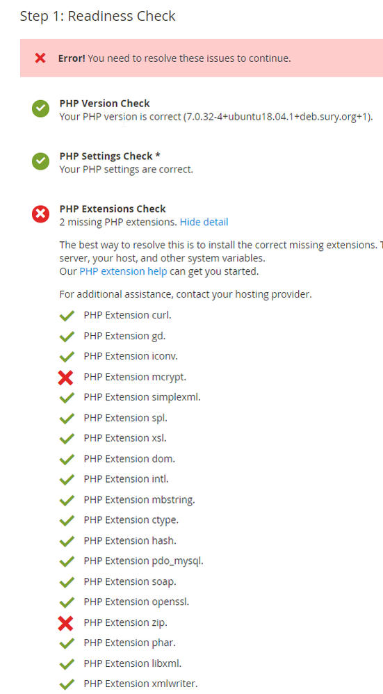 Your PHP version is correct (7.0.32-4+ubuntu18.04.1+deb.sury.org+1).