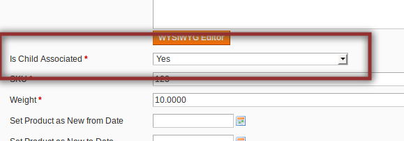 I have added attribute Is Child Associated and make it Yes/No field in product create page in magento admin.