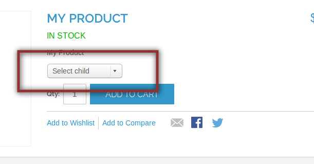 On the basis of above field I have displayed one dropdown on product page to select child for that product and save it in the db.