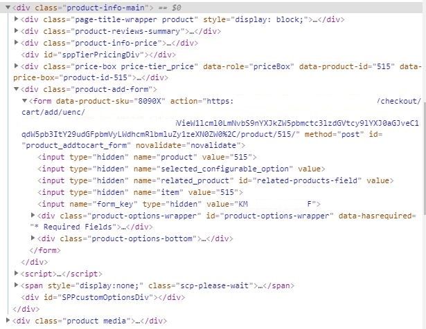 The <div class="product-add-form"> is not being added at all to the pages without the swatches.