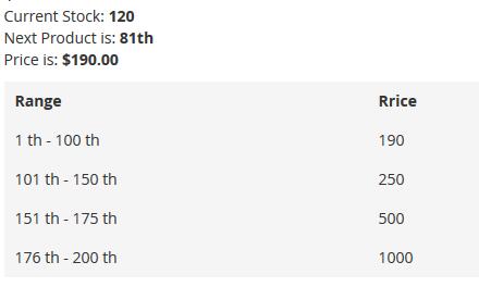 if the product is 1th-100th , each price of the product is 190€