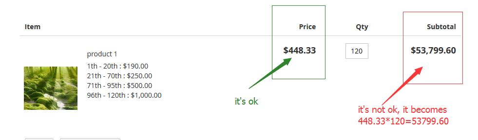 the unit price is ok , but the total price still not ok , it becomes to 448.33*120=53799.60 , right algorithm should be :
