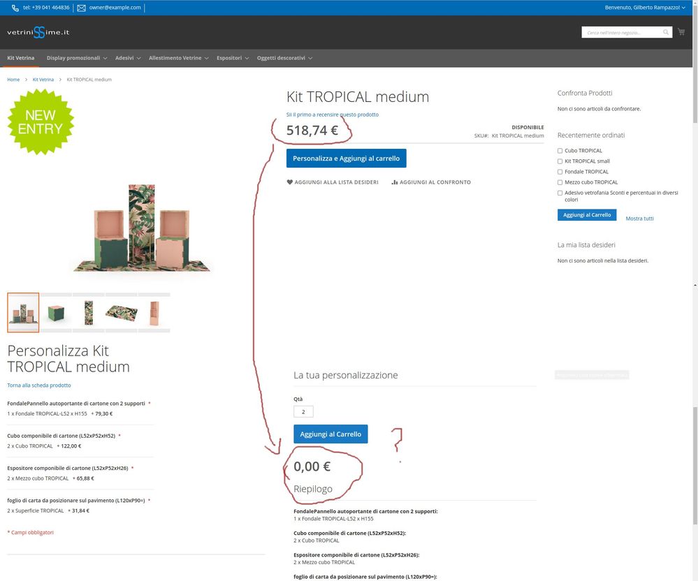 The product is displayed with the total price, but when the customer clicks on the button "customize and add to cart"